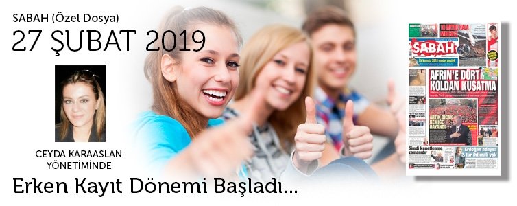 Sabah Gazetesi, 27 Şubat 2019 Çarşamba günü “Erken Kayıt” dönemi için özel bir dosya hazırlıyor.